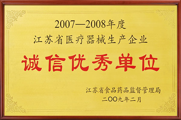 公司秉承“精心设计、用心制造、诚信经营、放心使用”的质量方针,历年来被评为江苏省医疗器械企业诚信单位。取得了德国TUV公司CE认证证书和质量体系认证证书,并通过了ISO13485质量体系考核证明。公司产品已遍布2000多家医疗机构,客户服务贯穿于产品整个寿命期,通过对器械实施全程跟踪,确保医院用户放心使用。